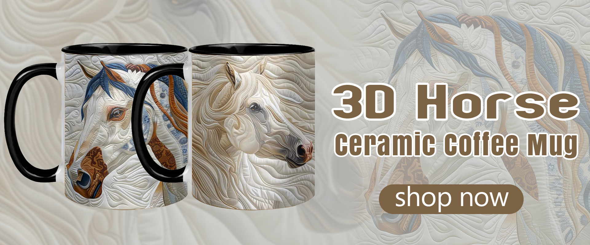 3D Horse Ceramic Coffee Mug (white)